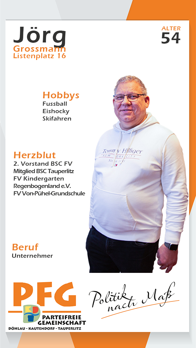 Unserer Julius ist unser jüngster Kandidat. In einer ehrenamtlichen und engagierten Familie groß geworden hat Julius schon in ganz jungen Jahren geholfen wo er konnte und durfte. So liegt ihm das Vereinsleben, insbesondere der Dartmannschaft QD Tauperlitz, bei der er als Mitbegründer fungiert, sehr am Herzen. Seine soziale und hilfsbereite Art spiegelt sich nicht nur in seinem Beruf wider, auch bei Veranstaltungen aller Art ist er immer mit am Start und hat ein offenes Ohr für alle.