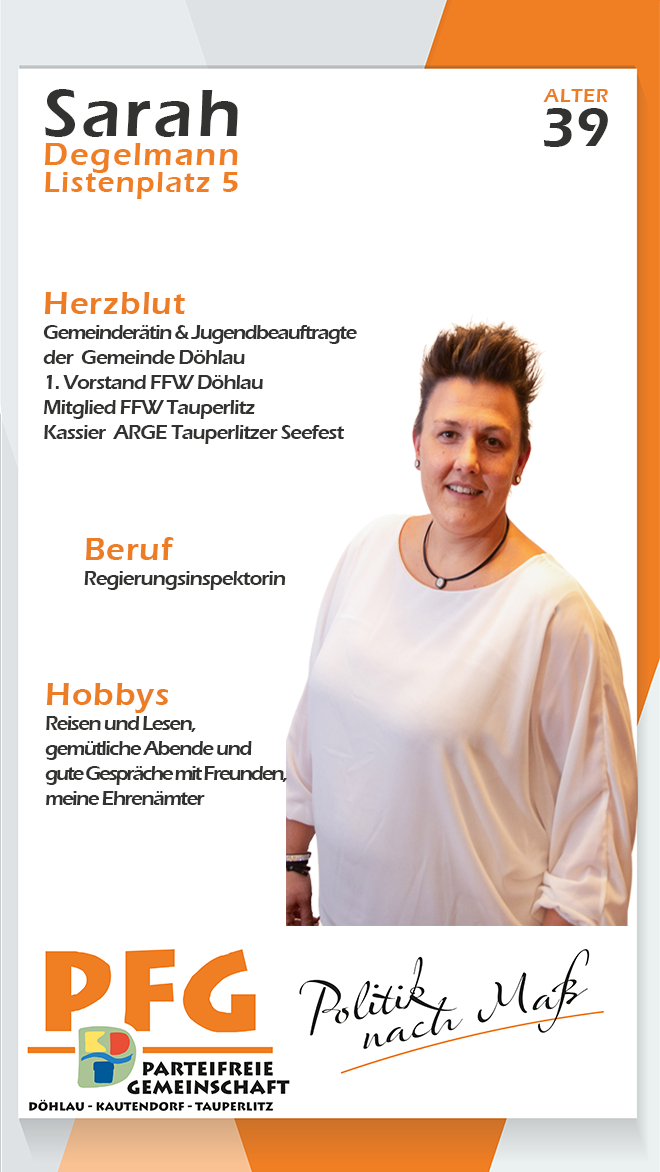 Unsere Sarah ist die Tarifexpertin unter uns. Ihr Herz schlägt für ihre Ehrenämter, was sich bei ihrem Einsatz auf vielen Veranstaltungen und in zahlreichen Gesprächen widerspielgelt. Auch bei anderen Fragen nimmt sie die Herausforderung, zwischen den Zeilen eines Gesetzes zu lesen, an. Neben neuen Ideen zur Förderung der Jugend, liegt ihr auch der Erhalt gemeindlicher Traditionen am Herzen.