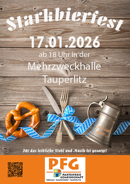 Schon mal vormerken: Zu einem Besuch unseres traditionellen Starkbierfestes am 17.01.2026 laden wir ab 18 Uhr herzlich in die Mehrzweckhalle nach Tauperlitz ein. Lasset Euch von ausgewählten Bierspezialitäten, deftigen fränkischen Brotzeiten und zünftiger Live-Musik verwöhnen.